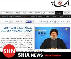 پایگاه سعودی الحیات بر خلاف الشرق الاوسط بخشهایی از اظهارات سیدحسن نصرالله که در آن درباره خطر گروههای تروریستی تکفیری بر لبنان هشدار داده بود، بازتاب داده است.