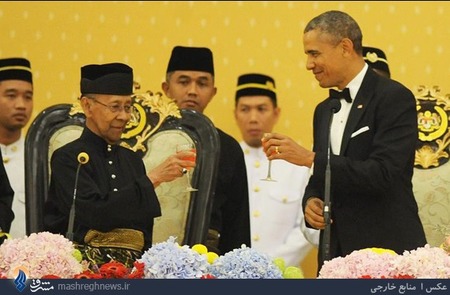 SHIA-NEWS.COM شیعه نیوز:به گزارش «شیعه نیوز»، رییسجمهور آمریکا روز شنبه در چارچوب سفری سه روزه با هدف تقویت مناسبات تجاری و امنیتی با مالزی وارد این کشور شد«باراک اوباما» که اولین رییسجمهوری آمریکا طی 50 سال گذشته است که به مالزی میرود در یک ضیافت شام به میزبانی سلطان عبدالحلیم معظم شاه پادشاه مالزی که 600 تن حضور داشتند در کاخ ملی این کشور شرکت کرد.رییس جمهور آمریکا که بخشی از دوران کودکی خود را در اندونزی زندگی کرده در این ضیافت شام از علاقه شدید مادرش به باتیک (نوعی لباس مرسوم در مالزی و اندونزی) صحبت کرد.