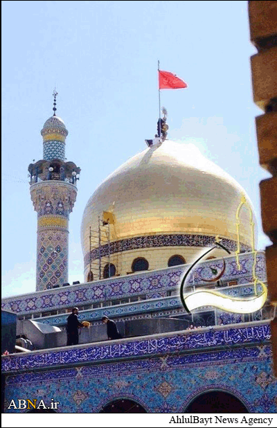 در این آیین باشکوه که همزمان با پانزدهم ماه رجب برگزار شد یکی از رزمندگان حزبالله لبنان که نامی از ایشان منتشر نشده پرچم سرخرنگ گنبد را با پرچم مشکی تعویض کرد.