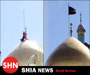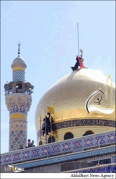 SHIA-NEWS.COM شیعه نیوز:به گزارش «شیعه نیوز»، به مناسبت فرارسیدن ایام وفات حضرت زینب كبری(علیها السلام) مراسم تعویض پرچم گنبد این حرم مطهر با حضور شیعیان و محبان اهل بیت عصمت و طهارت برگزار و پرچم سرخ رنگ حرم با پرچم عزای این حرم مطهر تعویض شد.