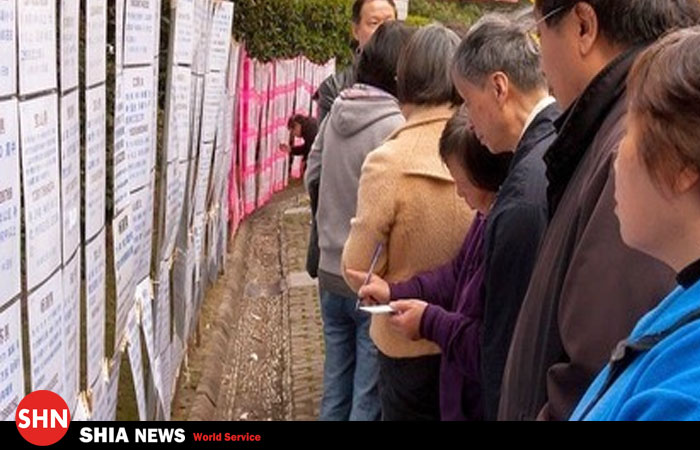 SHIA-NEWS.COM شیعه نیوز:به گزارش «شیعه نیوز»، در کشور چین خانواده ها برای حل مشکلات همسر یابی فرزندانشان دست به کاری عجیب زده اند. در کشور چین خانواده ها برای حل مشکلات همسر یابی فرزندانشان دست به کاری عجیب زده اند. آنها آگهی هایی را برای فرزندان دم بخت خود آماده می کنند و بر روی دیوار پارکی بزرگ در شانگهای به نمایش بگذارند. این تبلیغات شامل نام و نام خانوادگی، شماره تلفن و میزان درآمد فرزندانشان است که پدر و مادران هر شنبه و یکشنبه برای نصب تبلیغات به این پارک می آیند.