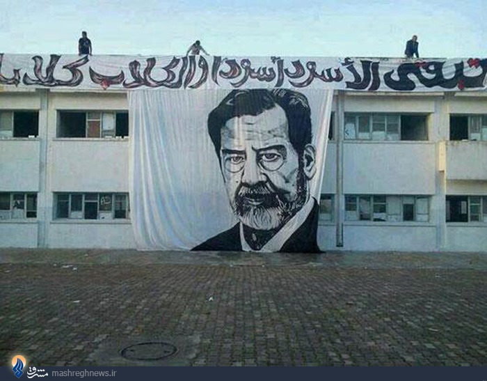 تروریست های داعش، علاوه بر نصب پرچم های سیاه خود در مناطق سقوط کرده عراق و سوریه، دیروز تصاویر بزرگ صدام، دیکتاتور معدوم عراق را در شهرک های حومه تکریت نصب کردند.