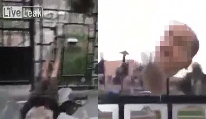 نیزه نشان می دهد. در این ویدیو، برخی از سرهای جدا شده از بدن بر روی فنس