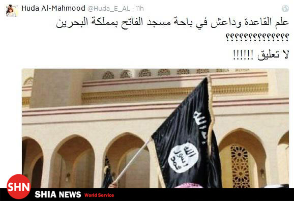 پرچم داعش در روز عید فطر در مسجد "فاتح" بزرگترین مسجد بحرین توسط عده ای بالا برده شد، حکوکت آل خلیفه در واکنش به این اقدام تنها به گفتن این جمله که طرفداران این گروهک را زیر نظر داریم اکتفا کرد.