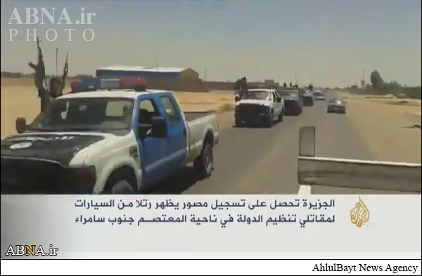 الجزیره افزود: در این فیلم کاروانی طولانی از خودروهای داعش پس از بازگشت از حملهای که روز دوشنبه این هفته به منطقه معتصم واقع در جنوب شهر سامراء در استان صلاح الدین انجام دادند دیده میشود.این شبکه اعلام کرده که این حرکت توسط یکی از فعالان فیلمبرداری شده است!در این فیلم خودروهای جدید شاسی بلند و خودروهای نظامی که شبکه دولت از ارتش عراق به غنیمت گرفته است دیده میشود.این کاروان، در حال حرکت در یک جاده عمومی در اطراف منطقه معتصم است.