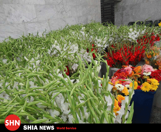 از سوی دیگر دهها نفر از خادمین آستانه ی مقدس علوی با همکاری خیرین ایرانی مشغول آماده سازی مرقد و ضریح شریف برای این مناسبت فرخنده شدند.زائران خیر ایرانی با هزاران دسته ی گل طبیعی در انواع و رنگهای مختلف به زیارت امیر المؤمنین (علیه السلام) شتافتند تا با همکاری مسئولین آستانه ی مقدسه علوی، مرقد مطهر را با این 14 هزار گل طبیعی تزیین کنند.