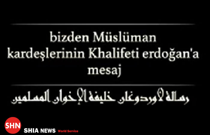 به گزارش «شیعه نیوز»،  گروهک تروریستی داعش با ارسال نامه‌ای به رجب طیب اردوغان، رئیس جمهور ترکیه بر همکاری دیرینه با اردوغان تأکید کرد.سایت خبری "الاقباط الیوم" مصر با انتشار کلیپی نوشت: گروهک تروریستی داعش، پیامی تصویری از طریق شبکه‌های اجتماعی برای اردوغان ارسال کرده است.داعش در این کلیپ، اردوغان را خلیفه اخوان‌المسلمین نامیده و ضمن تأکید بر همکاری دو طرفه، از وی خواسته است تا به داعش خیانت نکند.
