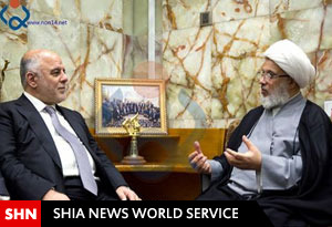 "حیدر عبادی" نخست‌وزیر عراق در دفتر شیخ "عبدالمهدی کربلائی" نماینده آیت الله سیستانی واقع در صحن شریف حسینی با وی دیدار کرد.