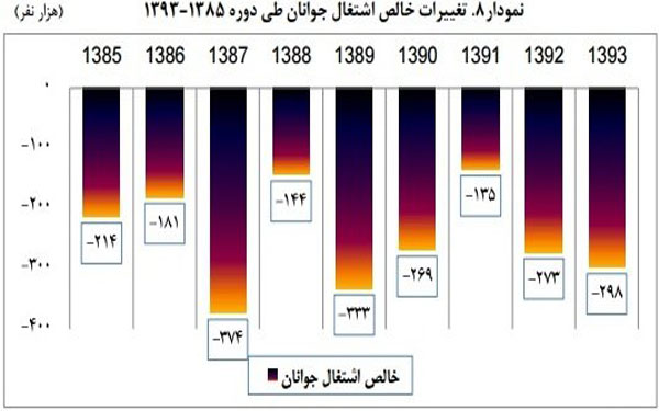 بنابراین اگر شرایط از بین رفتن اشتغال خالص جوانان مانند آنچه که در آمارهای ۹ سال گذشته وجود دارد ادامه داشته باشد، باید انتظار بدتر شدن اوضاع کاریابی و جستجوی شغل از سوی جوانان و بحرانی تر شدن این بازار در طول سال جاری و سال های آینده را داشته باشیم.